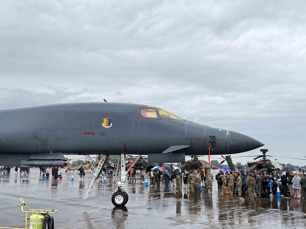 The run up to RIAT 2025 was rushed and fraught like everything these days although already I feel like July was a much simpler time compared to now. We tried to engage with the build up and when we got the notification fairly late in proceedings that a B1 was going to be in the flying display I really started to get the fizz. We were staying at Kempsford as always and the drive down was ok apart from the usual rinsing at the services. When we got to the campsite the weather was glorious but I wasn’t in the zone yet, the older you get the harder it is to forget about everything and achieve holiday + airshow mode. Some Thursday PDA demos helped and then after getting the tent up we took a stroll to the marquee and on the way got talking to a family who were there with a classic VW camper van and the airshow coversation began to flow. Out came all our favourite airshow memories, and various shared experiences and in no time the final piece of the RIAT jigsaw was in place – I was airshow ready! We grabbed some tea, a £16 burger each – very tasty but yeah, £16 – that’s pretty steep! I washed mine down with some no-alcohold beer as this was my first ever teetotal RIAT – no more rocking out in the marquee until last orders then spewing up in a chemical toilet next day :-/ Whilst at the beer tent we saw more PDA displays from 2 x Spitfires (my son loved these) the Atlantique, an F16 and the G91 – happy days, never seen an Atlantique or a G91 before